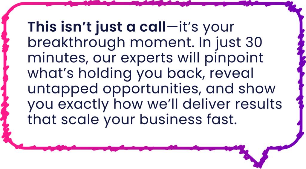 Simple! Book your free 30-minute consultation today. We’ll analyze your business, uncover growth opportunities, and show you exactly how we’ll help you scale.